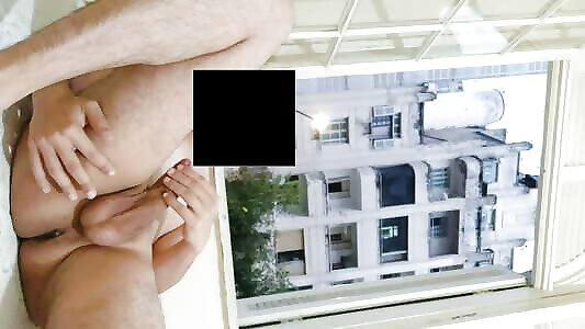 Risky masturbation flashing at open window front neighborhood 1