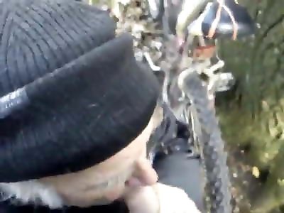 Senior dude deep throating bone in park