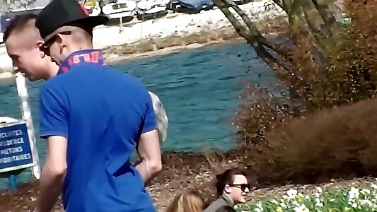 Milking faggot boys outdoors and homosexual stud short cutoffs in the public park