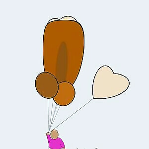 Large person with balloons.